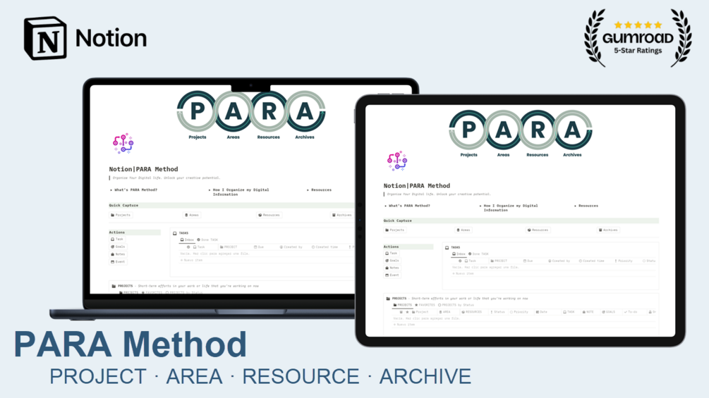 Core to his method is PARA – a system for organizing information into Projects, Areas, Resources, and an Archive. This template brings the power of the PARA method to Notion.