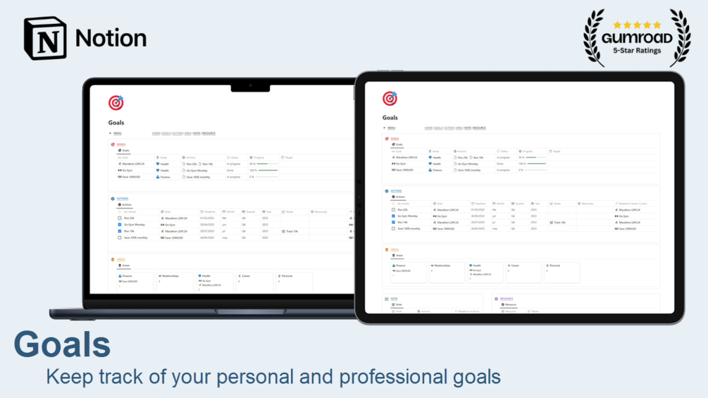 With this Notion template, you'll be able to take control of your Goals